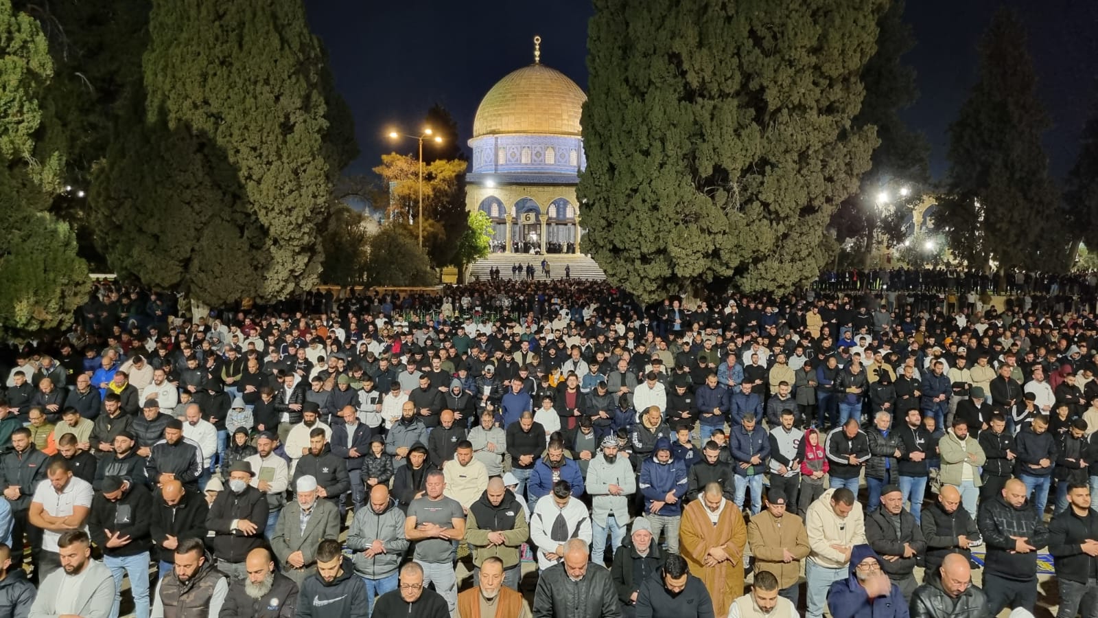 القدس 12-3-2025 وفا- أدى 65 ألف مصل، مساء اليوم الأربعاء، صلاتي العشاء والتراويح في المسجد الأقصى المبارك بمدينة القدس المحتلة.