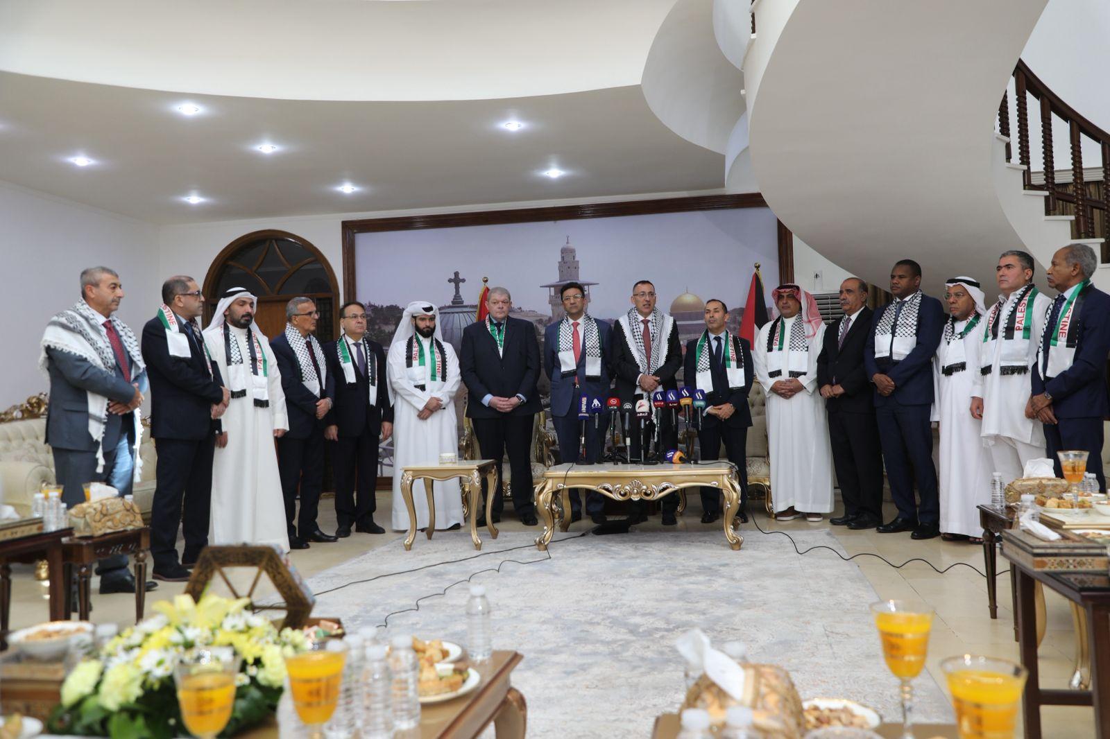 وفي كلمة باسم السفراء العرب، ألقاها سفير المملكة الأردنية ماهر طراونة، الذي عبّر عن الموقف العربي الموحّد والداعم لحق الشعب الفلسطيني في إقامة دولته المستقلة وعاصمتها القدس الشرقية.