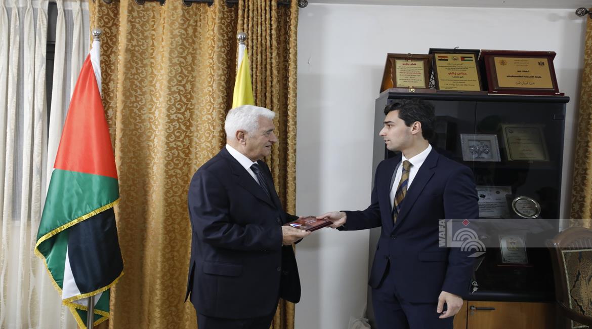 رام الله 1-10-2025 وفا– سلم القائم بأعمال الممثلية الروسية لدى دولة فلسطين أرثور انتونيان، نيابة عن رئيس حزب روسيا العادلة، رئيس كتلة الحزب في مجلس الدوما الروسي، وسام الشرف لعضو اللجنة المركزية لحركة التحرير الوطني الفلسطيني "فتح"، المفوض العام للعلاقات العربية والصين الشعبية، عباس زكي.