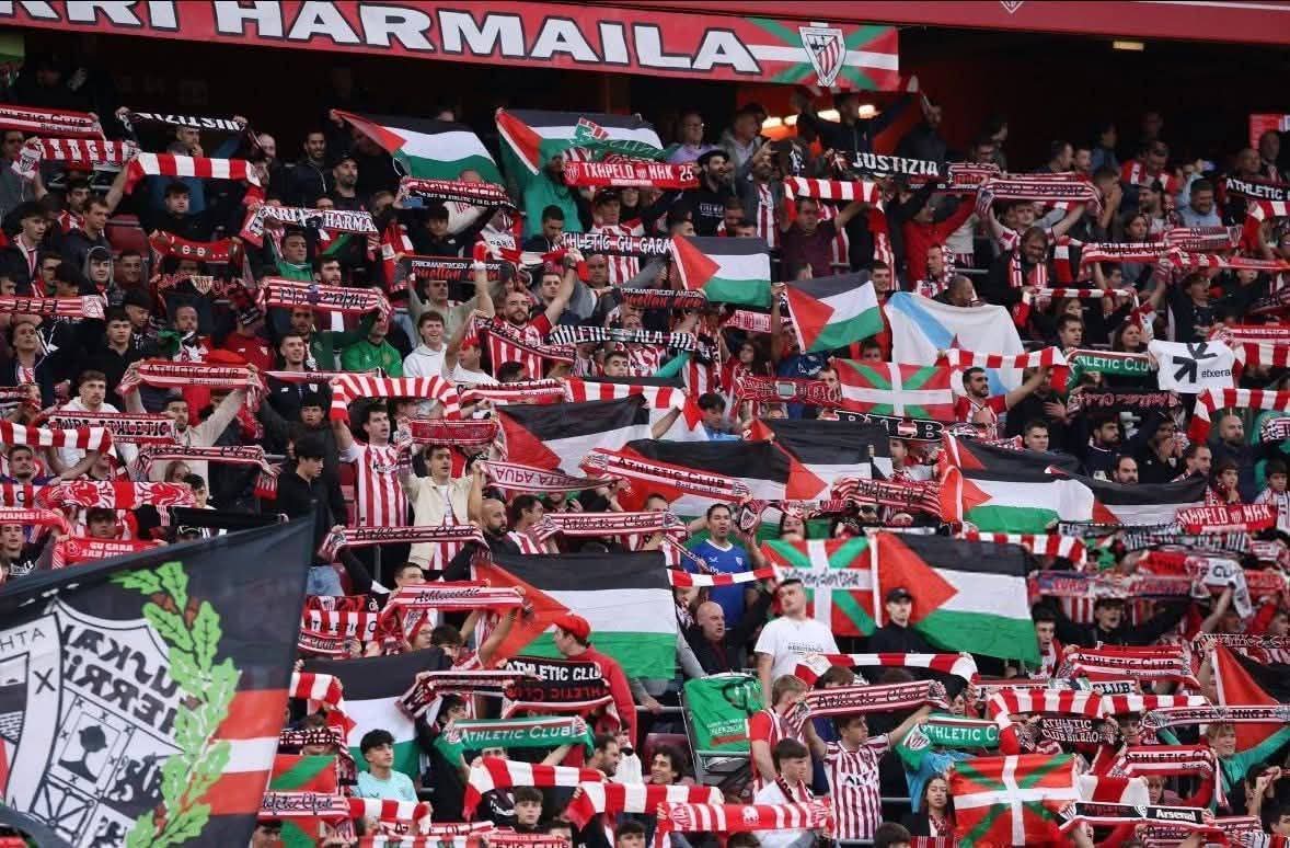 ورفعت الجماهير الكبيرة خلال العرض العلم الفلسطيني ورفعت لافتة رسالة تضامنية على شاشات الملعب : "أتلتيك مع فلسطين. أوقفوا الإبادة".