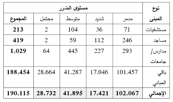 المباني المتضررة جراء العدوان حتى 8/7/2025