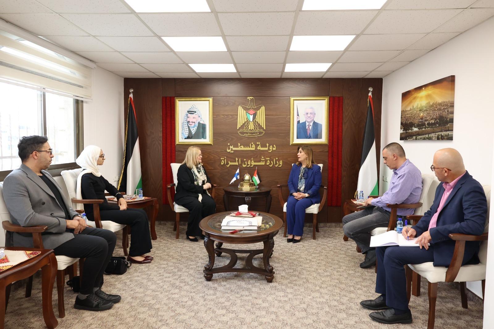 الوزيرة الخليلي تستقبل ممثلة جمهورية فنلندا في فلسطين ووفد مؤسسة الرؤية الفلسطينية