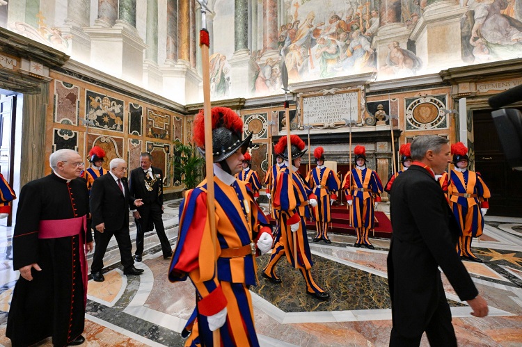وشدد سيادته على عمق العلاقات التاريخية التي تربط دولة فلسطين والكرسي الرسولي، والسعي دوما إلى تعزيزها منذ اعتراف الفاتيكان بدولة فلسطين وتطويب قديستين من بنات فلسطين في عام 2014، وتوقيع مذكرة التفاهم بين الجانبين عام 2017. وجدد الرئيس التأكيد على العمل المشترك مع الفاتيكان على تعزيز الوجود المسيحي في فلسطين باعتباره وجودا اصيلا ومتجذرا في الشعب الفلسطيني منذ الاف السنين.