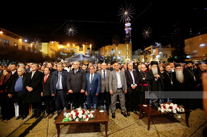 ونقل خوري، في كلمته، تحيّات وتهاني الرئيس محمود عباس إلى أبناء الشعب الفلسطيني، وأبناء مدينة بيت لحم على وجه الخصوص، لمناسبة أعياد الميلاد، مؤكّدًا أن بيت لحم، مدينة الميلاد، تجدّد من جديد رسالة الرجاء والسلام التي انطلقت منها إلى العالم قبل أكثر من ألفي عام.