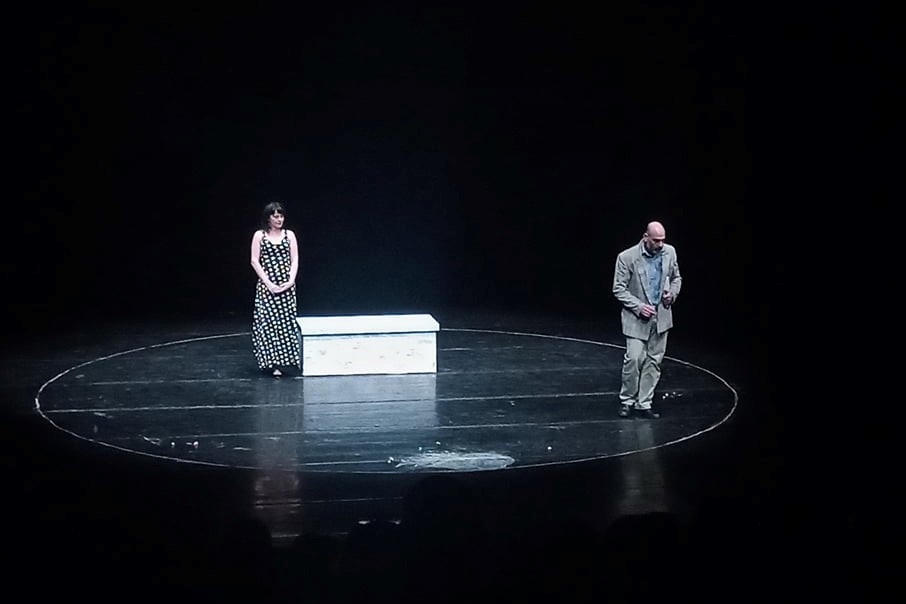 وتناقش المسرحية بأسلوب درامي ولغة سلسة وقريبة من الجمهور، قضايا وجودية مهمة من خلال الحوار اليومي بين الزوجين، متطرقة إلى الصراع بين الحياة والموت، وحرية الاختيار والحصار، والضعف والقوة، واليأس والأمل.