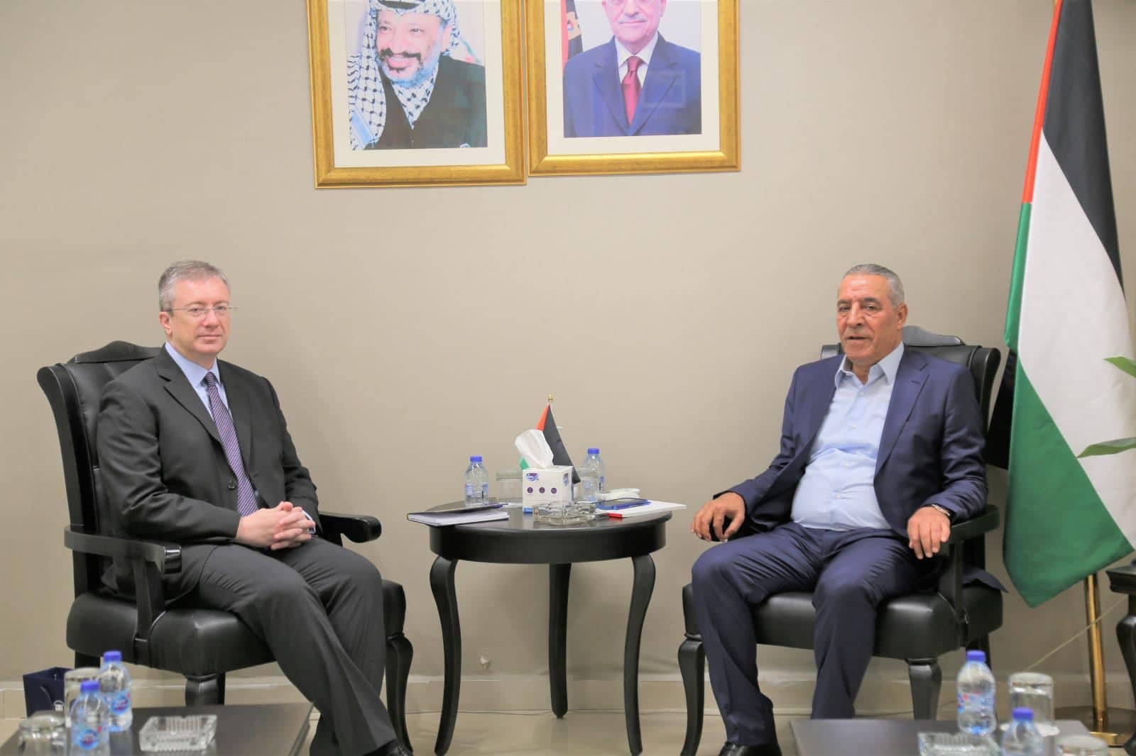 رام الله 20-6-2022 وفا- بحث أمين سر اللجنة التنفيذية لمنظمة التحرير الفلسطينية حسين الشيخ مع القنصل اليوناني العام في القدس إفانجيلوس فليراس، اليوم الإثنين، آخر المستجدات والتطورات السياسية حول القضية الفلسطينية على كافة الأصعدة محليا وعالميا.