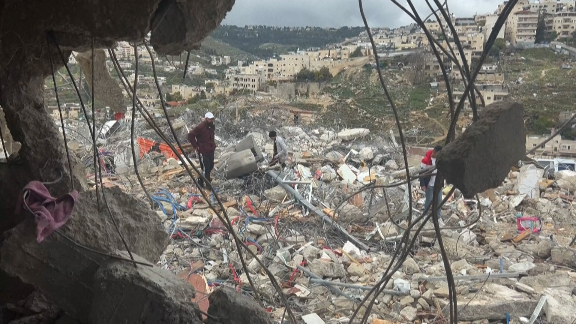 تفقّد منازل مدمرة بالقصف في مخيم المغازي