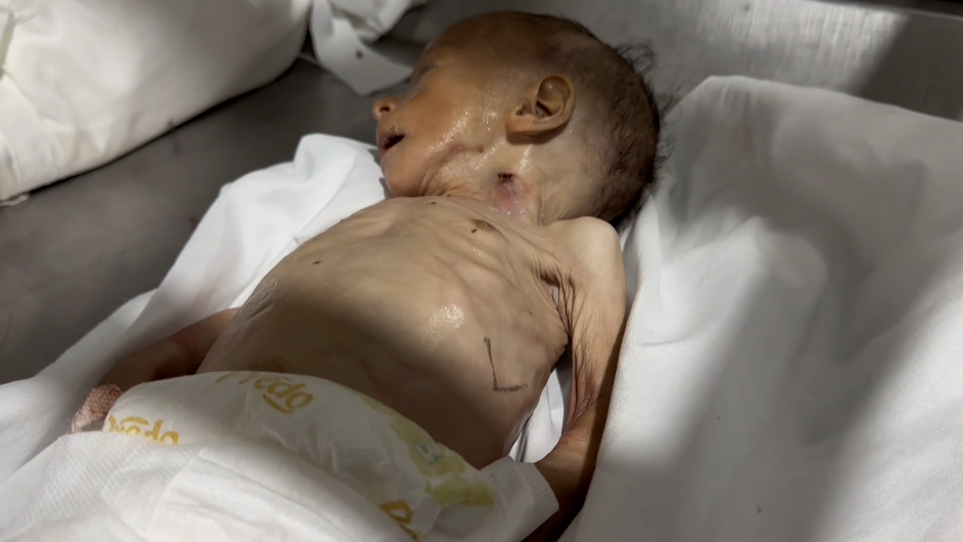 ارتقاء رضيع نتيجة سوء التغذية في خان يونس