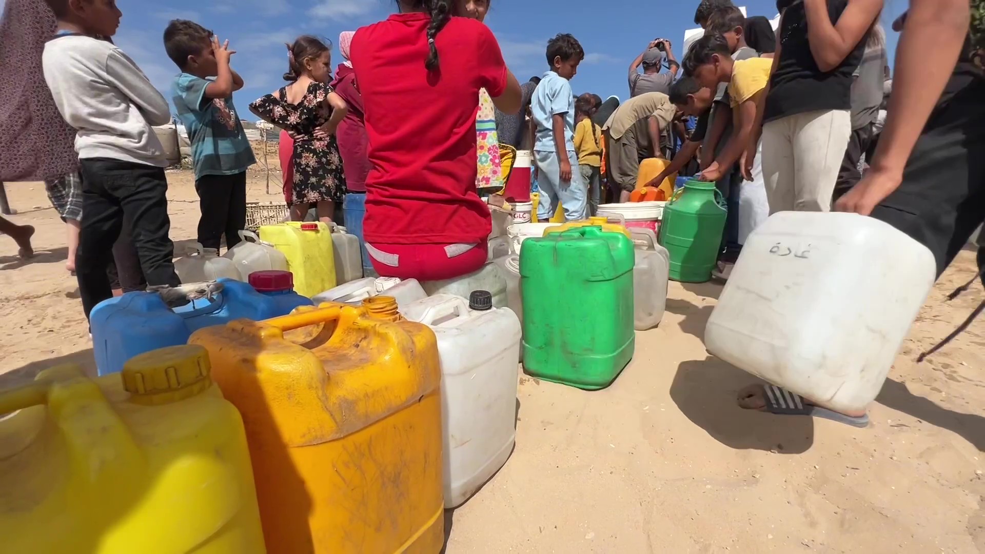 طوابير للحصول على المياه في مخيم النصيرات
