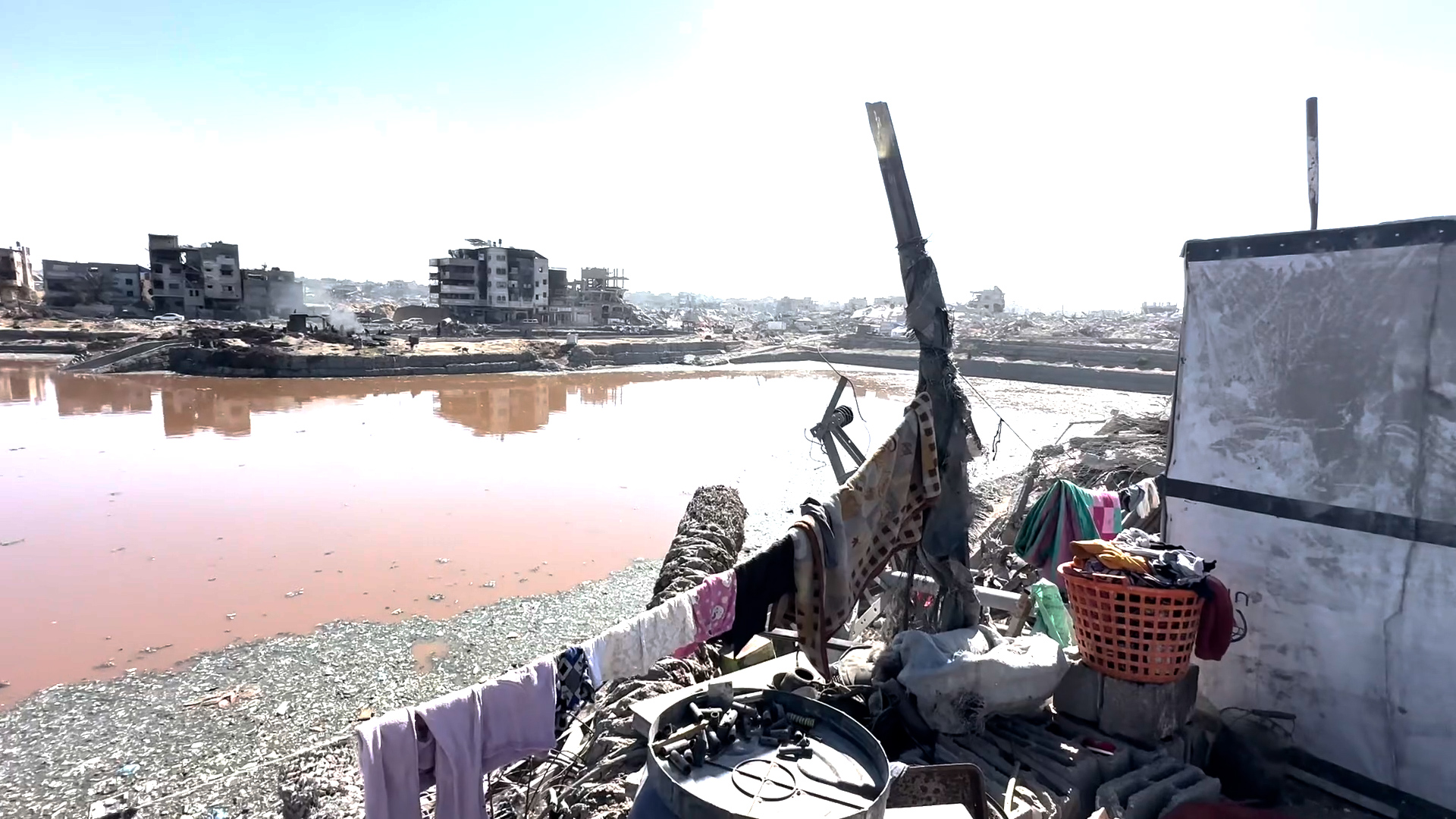 أسرة نازحة تتخذ من منزل مدمّر وآيل للسقوط مأوى لها في جباليا شمال قطاع غزة