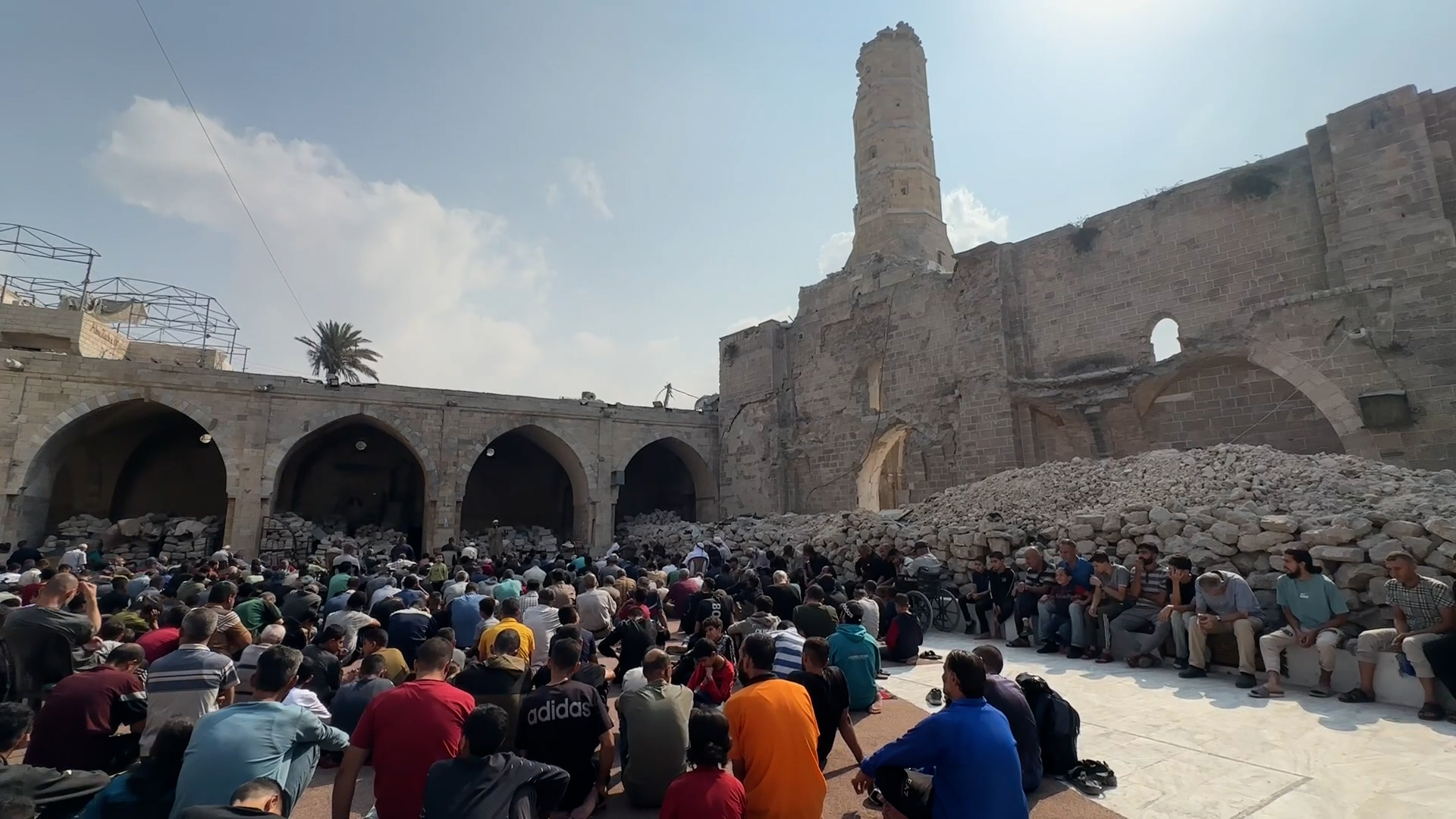 مواطنون يؤدون صلاة الجمعة في مسجد عمر بغزة