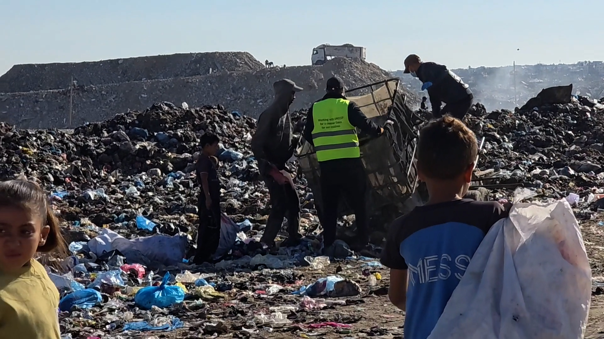 نازحون يبحثون عن البلاستيك في مكب شمال خان يو ...