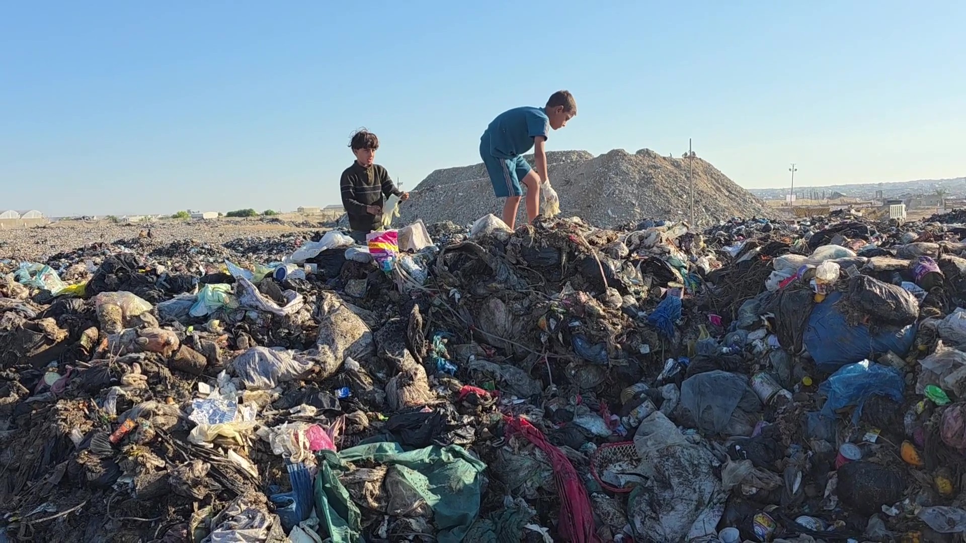 نازحون ينبشون النفايات بحثاً عن البلاستيك في خان يونس