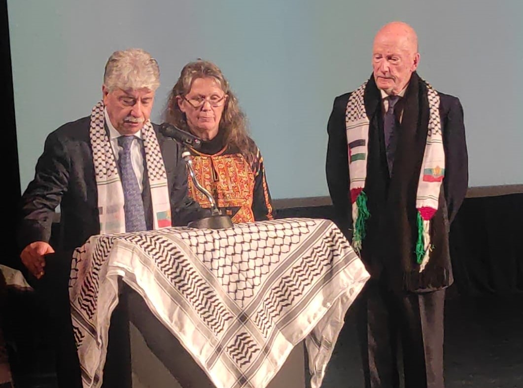 وجرى خلال الحفل تكريم الرئيس البلغاري الأسبق جورجي باربانوف، ورئيس الوزراء الأسبق سيمون بير غوسون، لجهودهما بدعم القضية والشعب الفلسطيني.