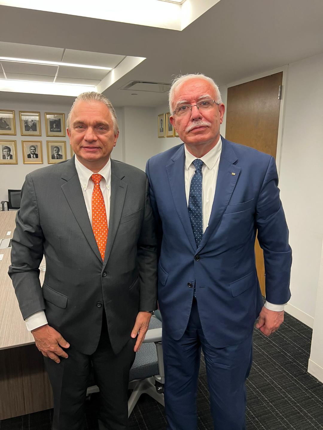 نيويورك 20-9-2022 وفا- التقى وزير الخارجية والمغتربين لدولة فلسطين رياض المالكي، نظيره الكوستاريكي رودلفو سولانو، على هامش أعمال الشق رفيع المستوى للجمعية العامة للأمم المتحدة في دورتها الـ 77 المنعقدة حاليا في نيويورك.