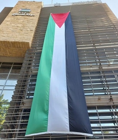 وأكد اللوح دعم الرئيس في جميع المساعي والحراك السياسي والدبلوماسي والقانوني وكفاحه المستمر في هذا الصدد، موضحا أن العلم الفلسطيني يعتبر تاريخ وكفاح دولة فلسطين وليس مجرد ألوان أربعة نتباهى بها، كما أنه رافق النضال الفلسطيني ويجب أن نرفعه داخل فلسطين وخارجها.
