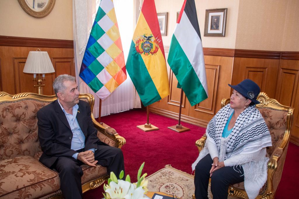 وأعربت خلال لقائها سفير دولة فلسطين في بوليفيا محمود العلواني، موقف حكومتها وشعب بوليفيا مع شعب فلسطين ومناصرته أمام العدوان الإسرائيلي الغاشم، كما أدانت المجازر التي ارتكبت بحق أطفال فلسطين.
