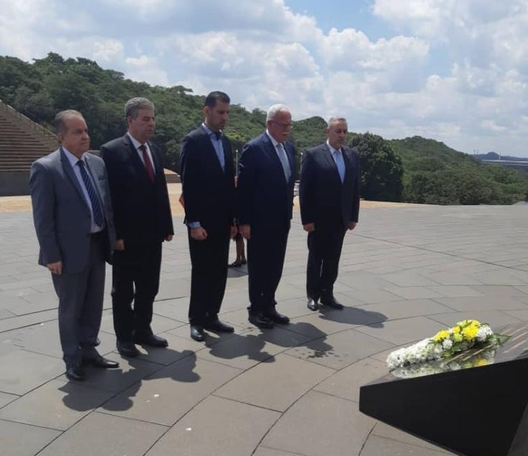 هراري 20-3-2023 وفا- وضع وزير الخارجية والمغتربين رياض المالكي، اليوم الإثنين، في مستهل زيارته الرسمية لجمهورية زيمبابوي، إكليلا من الزهور على نصب الأبطال القوميين، تكريما لمن ناضلوا في سبيل تحرير بلادهم، حيث نالت جمهورية زيمبابوي استقلالها في 18-4-1980.