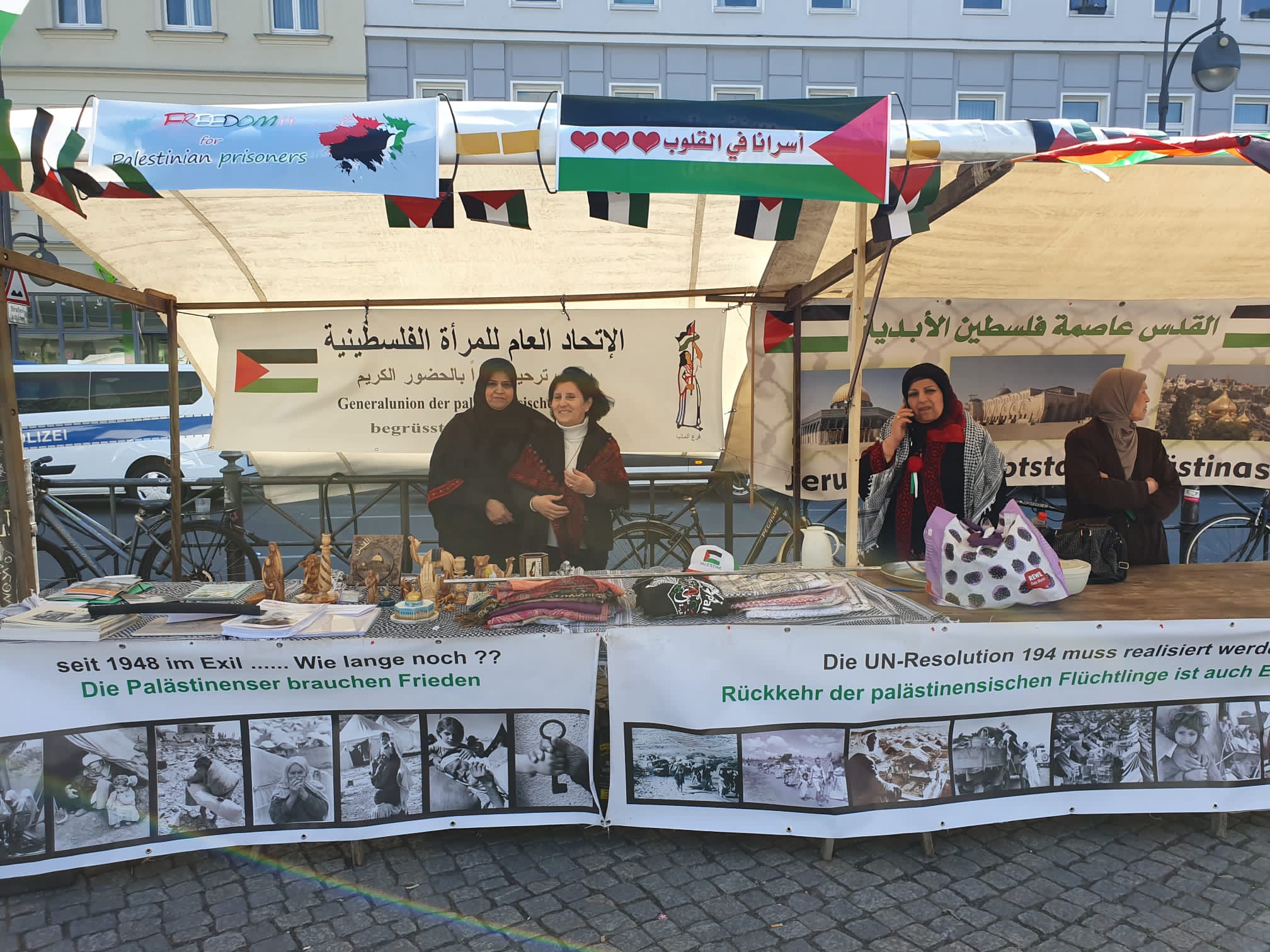 في مدن فرانكفورت وهسن وشتوتجارت بالمانيا، نظمت الجالية الفلسطينية بالتنسيق مع لجان التضامن مع الشعب الفلسطيني مظاهرات ووقفات تضامنية في الذكرى الـ75 للنكبة، رفع خلالها المشاركون الأعلام الفلسطينية ورددوا الهتافات المنددة بالجرائم والسياسات الإسرائيلية العدوانية بحق أبناء شعبنا في قطاع غزة ومدن الضفة والقدس.