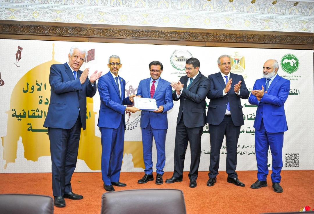 جاء ذلك في حفل خاص أقيم في العاصمة المغربية الرباط، بحضور المدير العام للمنظمة، محمد ولد اعمر، ومدير عام منظمة العالم الإسلامي للتربية والعلوم والثقافة "الإيسيسكو"، سالم بن محمد المالك، وأمين عام اللجنة الوطنية الفلسطينية للتربية والثقافة والعلوم، رئيس المجلس التنفيذي لمنظمة "الإيسيسكو"، دوّاس دوّاس، وسفير دولة فلسطين لدى المملكة المغربية جمال الشوبكي، الذي ألقى كلمة بهذه المناسبة نيابة عن وزير الثقافة الفلسطيني عاطف أبو سيف.