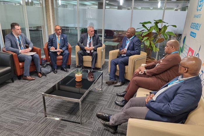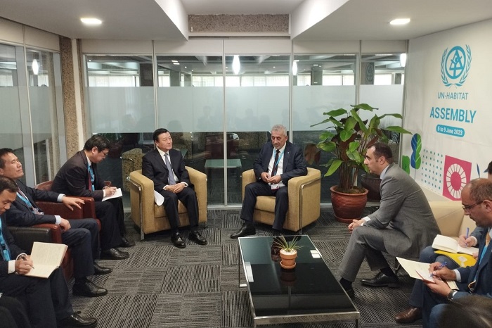نيروبي 8-6-2023 وفا- التقى وزير الحكم المحلي، مجدي الصالح، اليوم الخميس، عددا من الوزراء والسفراء والمسؤولين الدوليين على هامش أعمال الدورة الثانية لجمعية الأمم المتحدة للموئل التابعة لبرنامج الأمم المتحدة للمستوطنات البشرية، المنعقدة في العاصمة الكينية نيروبي.