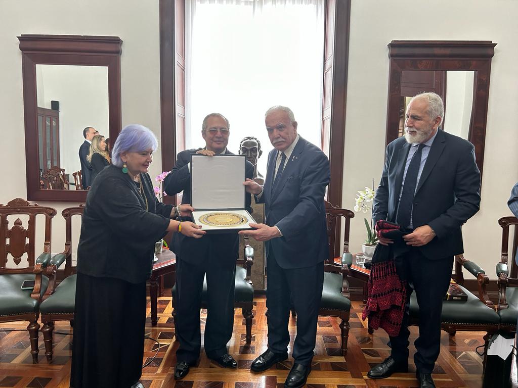 بوغوتا 15-9-2023 وفا- التقى وزير الخارجية والمغتربين رياض المالكي، يوم الخميس، رئيس البرلمان الكولومبي إيفان ليونيداس نعيمة فاسكيز في مقر البرلمان الكولومبي بالعاصمة بوغوتا.
