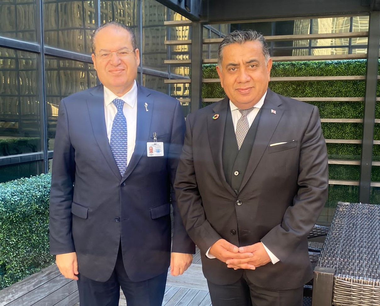 نيويورك 20-9-2023 وفا- بحث مستشار الرئيس للشؤون الدبلوماسية مجدي الخالدي، مع وزير الدولة البريطاني للشرق الأوسط اللورد أحمد، آخر التطورات في القضية الفلسطينية، والاتصالات السياسية الجارية حاليا.