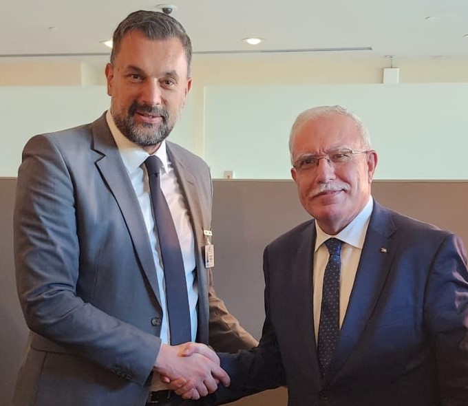 نيويورك 22-9-2023 وفا- أطلع وزير الخارجية والمغتربين رياض المالكي، وزير خارجية البوسنة والهرسك المدين كوناكوفيتش على تطورت الأوضاع في فلسطين التي تشهد تصاعدا متزايدا في وتيرة اعتداءات قوات الاحتلال الإسرائيلي على الشعب الفلسطيني، والانتهاكات الصارخة لأرضه ومقدساته، خصوصا في القدس، في ظل وجود حكومة متطرفة تسعى للقضاء على الحل التفاوضي ومساعي السلام.