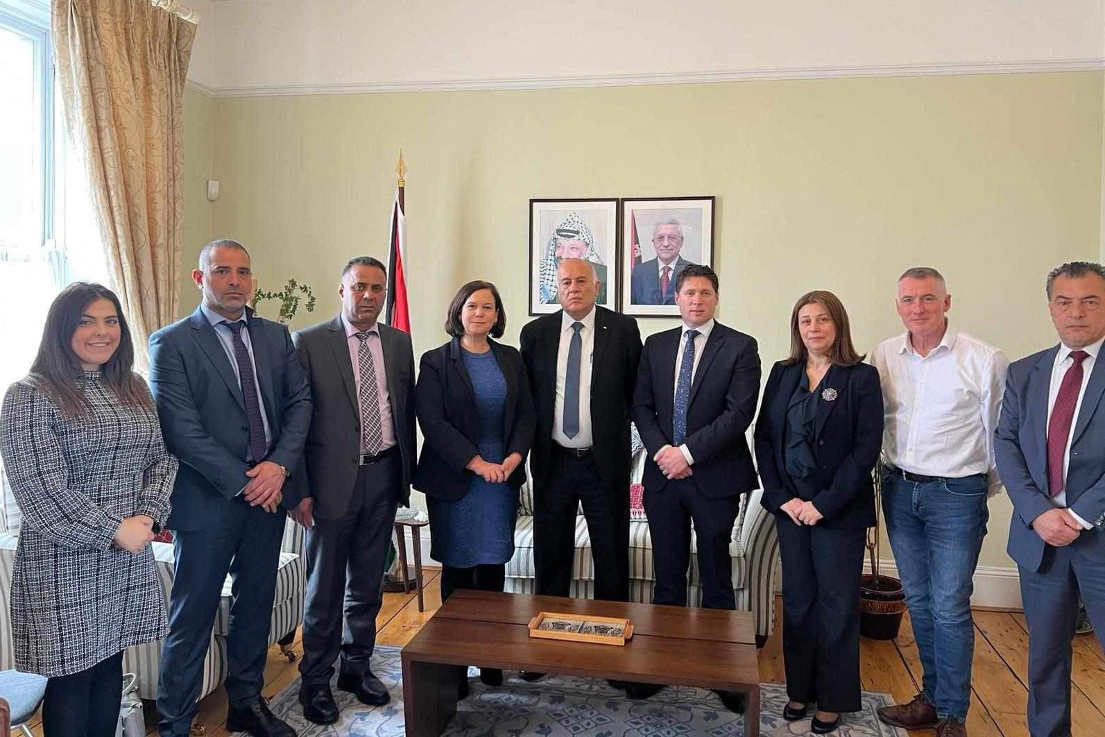 دبلن 5-3-2024 وفا- أطلع أمين سر اللجنة المركزية لحركة "فتح"، الفريق جبريل الرجوب، اليوم الثلاثاء، رئيسة حزب الشين فين الإيرلندي، ماري لو ماكدونالد على آخر المستجدات السياسية في الساحة الفلسطينية.