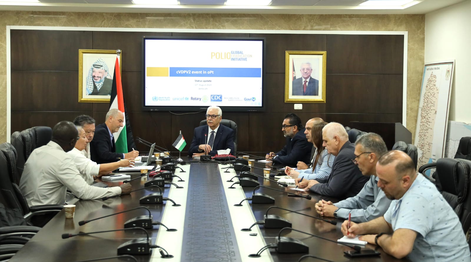 وبحث اللقاء الوضع الصحي الحرج في قطاع غزة جراء استمرار عدوان الاحتلال الإسرائيلي، والإجراءات والتحديات والنتائج المتوقعة من حملة التطعيم ضد شلل الأطفال في القطاع، وآلية حماية الطواقم الصحية الميدانية التي ستقوم بتنفيذ حملة التطعيم.