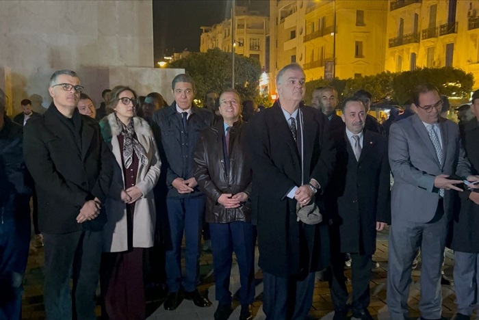 وتزيّنت الساحة برايتي تونس وفلسطين في مشهد رمزي يعكس عمق الروابط التاريخية ومتانة الموقف الدائم تجاه القضية الفلسطينية.