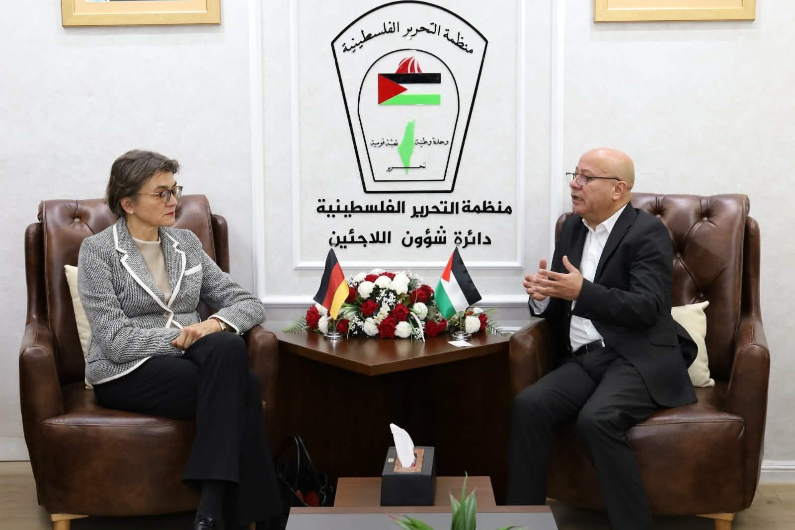 رام الله 17-3-2026 وفا-بحث عضو اللجنة التنفيذية لمنظمة التحرير الفلسطينية، رئيس دائرة شؤون اللاجئين أحمد أبو هولي، مع رئيسة الممثلية الألمانية لدى دولة فلسطين السفيرة أنكه شليم، آخر المستجدات السياسية والميدانية المتعلقة بقضية اللاجئين، في ظل التحديات الراهنة التي تعصف بالمنطقة والتهديدات التي تواجه وكالة غوث وتشغيل اللاجئين (أونروا).