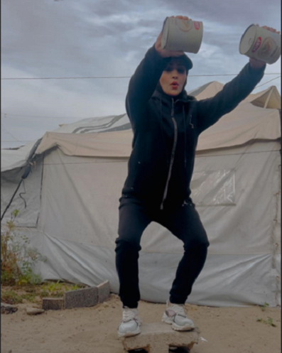 بدأت المغير بتصوير مقاطع تدريبية من داخل خيمتها، مستخدمة أدوات بسيطة من البيئة المحيطة، مثل علب المساعدات الغذائية، وقارورات المياه، وعصي الخيام، وأنبوبة الغاز، والأحجار، وحتى عصا المكنسة. وتوضح: حاولت أن أُثبت أن الرياضة ممكنة في أي مكان، حتى في أصعب الظروف.