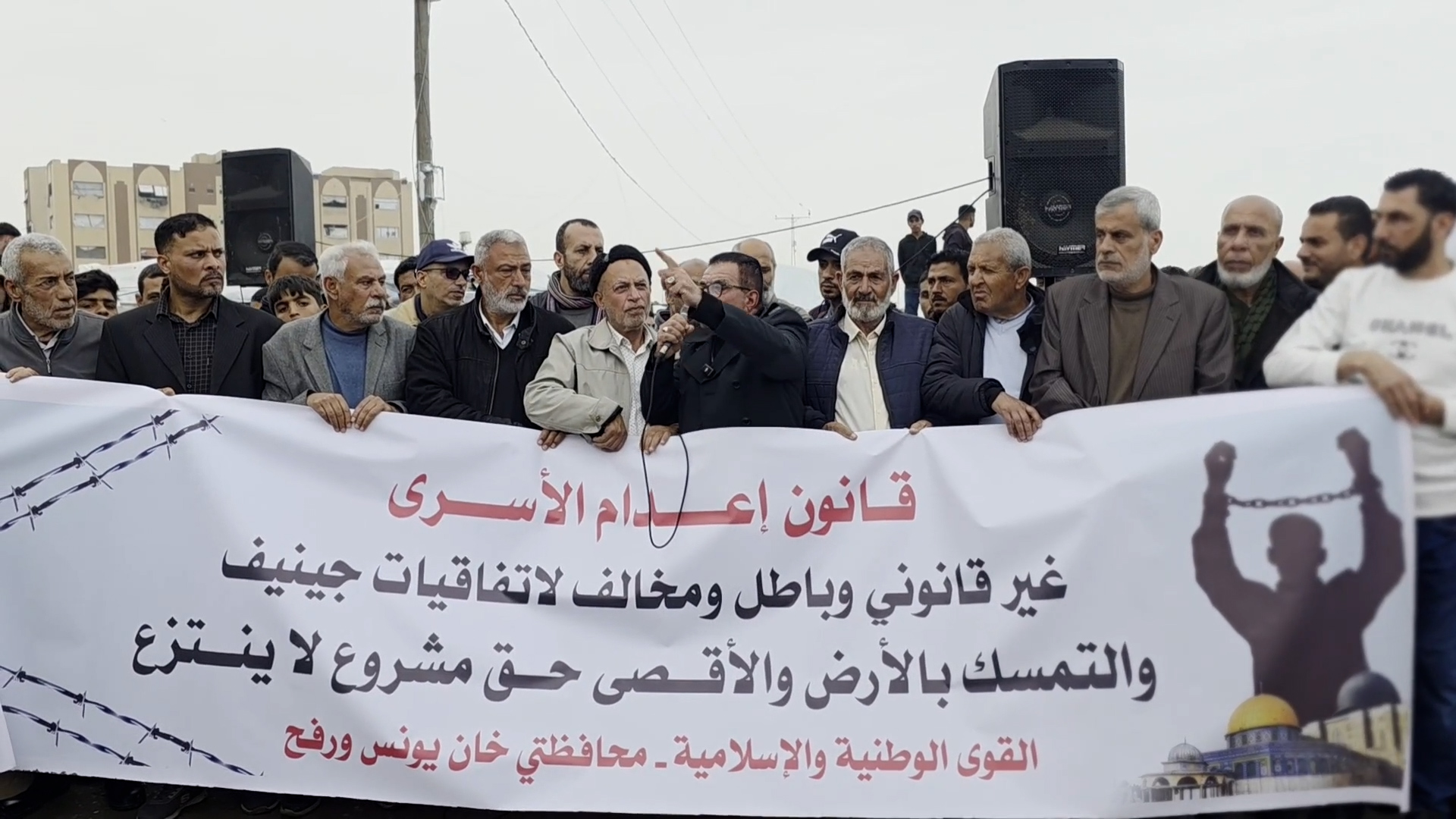 وقفة بخان يونس تنديداً بتشريع إعدام الأسرى