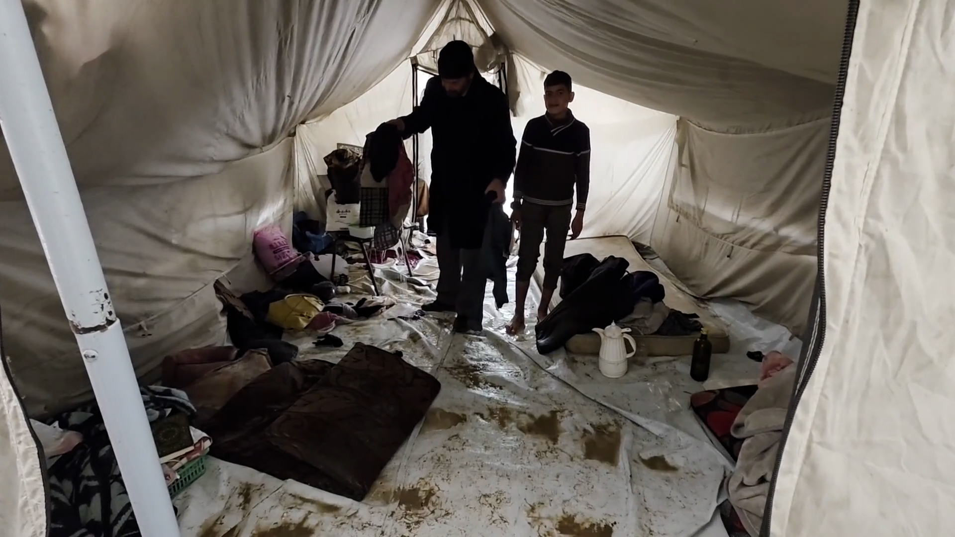 المنخفض الجوي يفاقم معاناة النازحين في خان يونس